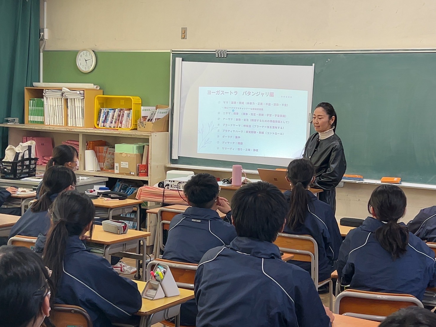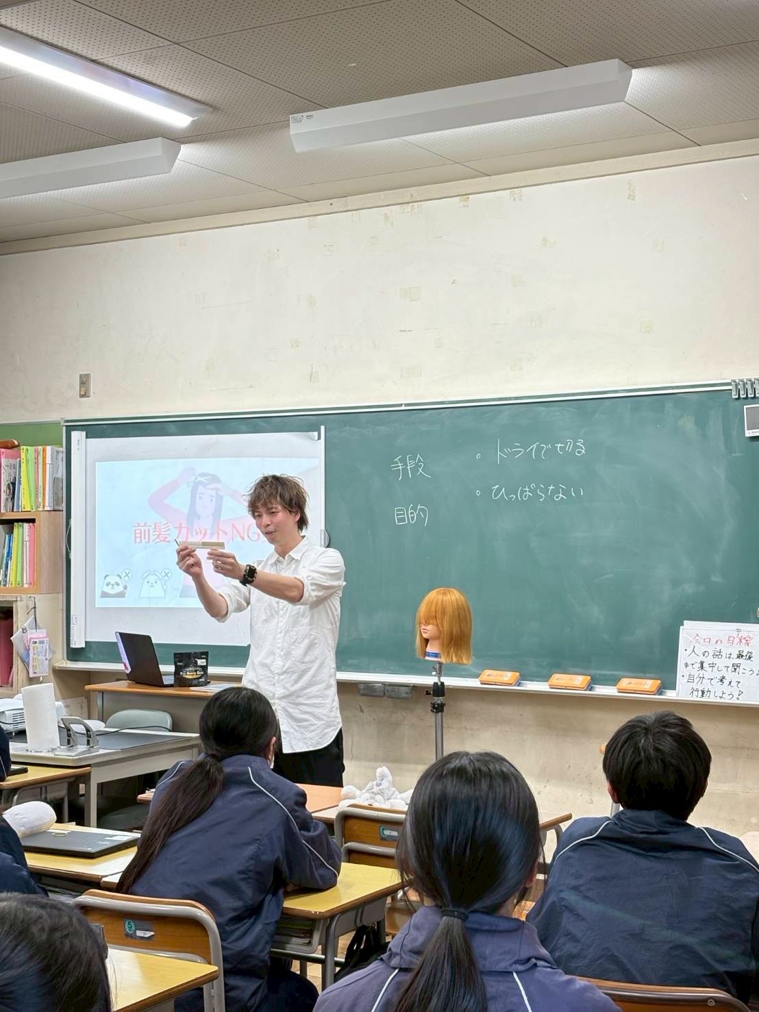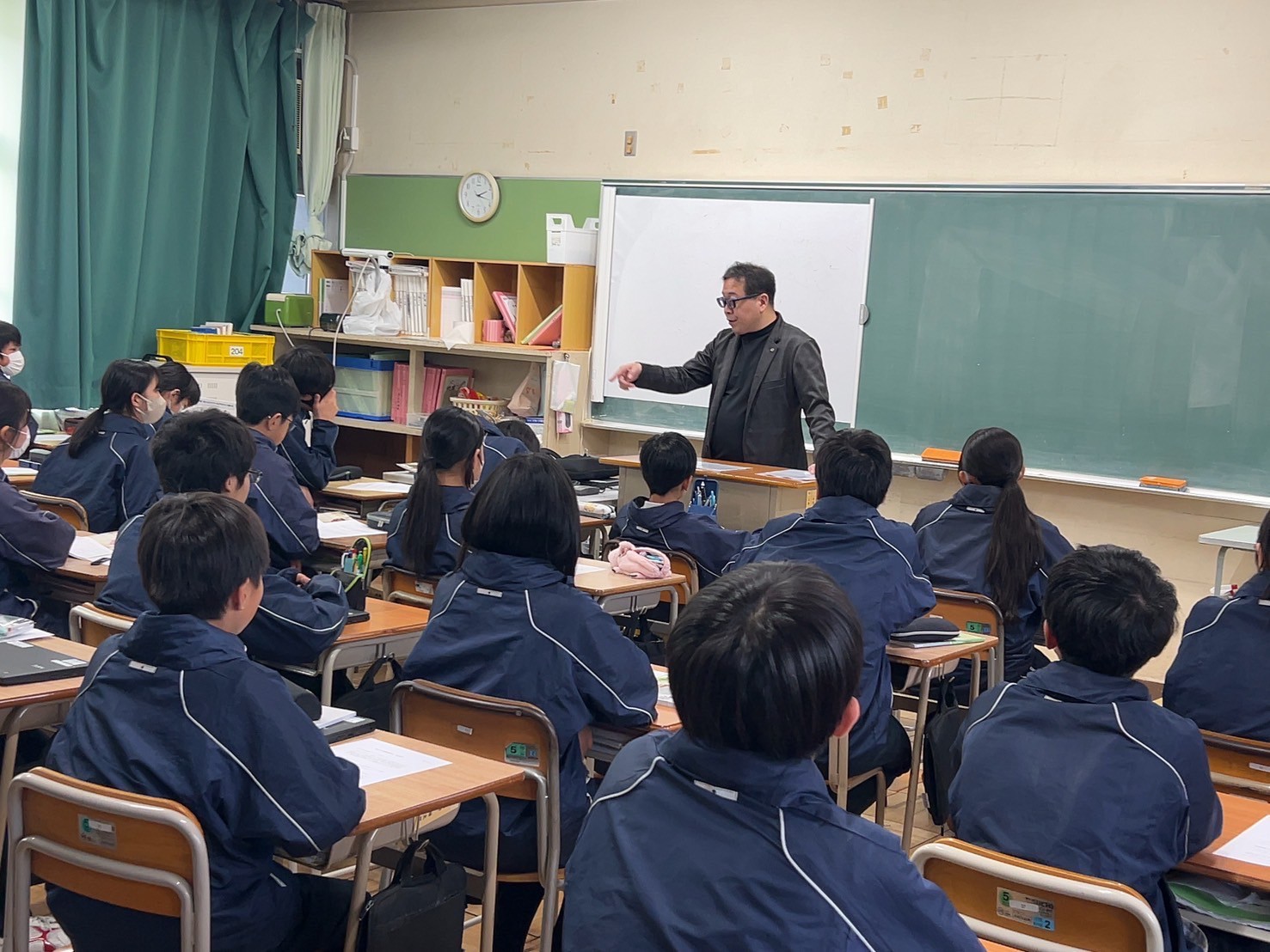 今回は道徳の授業を生徒と一緒にうけ、その後に職業講話会という初のこころみでした。
